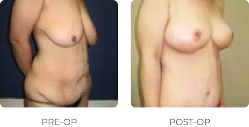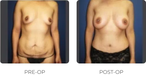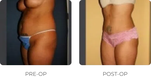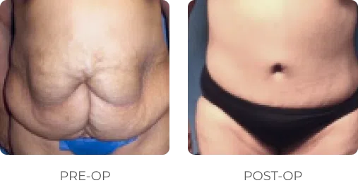 46 old female with excess fat and skin of her abdomen and waist plus weakness of her abdominal wall. Undergone 3 pregnancies and desires improved contour. Tummy tuck was performed along with strengthening abdominal wall. Results show a much improved contour, flatter abdomen, without anymore excess tissue hangover. Patient also underwent liposuction to the back and waist along with fat grafting to the buttocks.