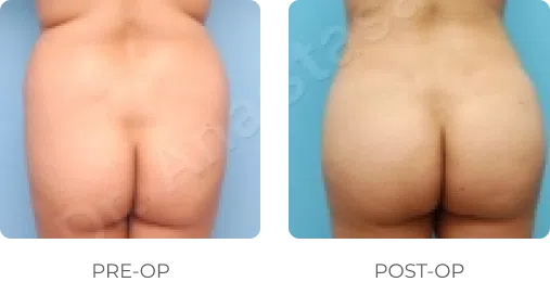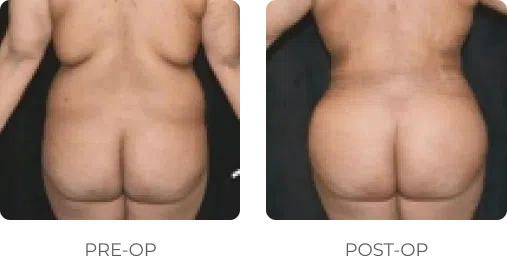 This is a 40 year old Hispanic patient who previously had a tummy tuck and liposuction of her backside with a different medical center. Unhappy with her results, she consulted with Dr Mandris at Beverly Hills Physicians because she wanted to revise the previous liposuction result and to transfer fat to her buttocks to improve the shape. Using tumescent technique, her abdomen and back were liposuctioned and 1350cc of injectable fat was obtained. Approximately 675cc of fat were transferred to each side of her buttock. These photos were taken 8 weeks post surgery.